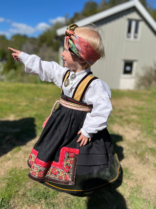 Vi har mønster til barn opp til 12 år. Sy noe som ligner en bunad eller bruk fri fantasi.